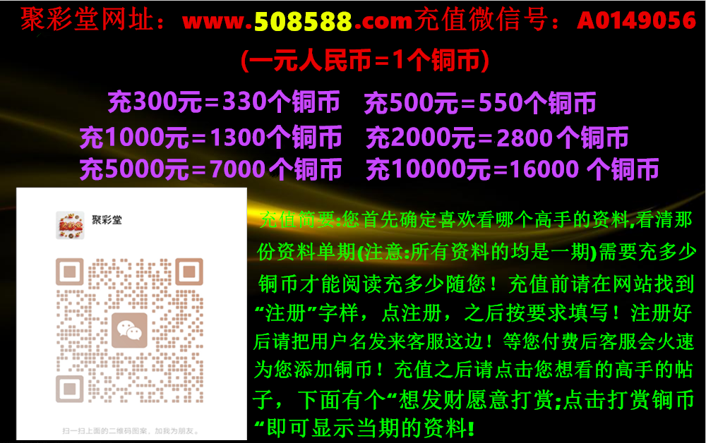 本料只在www.508588.com独家发表,如果您觉得本站的资料不错,请截图分享到QQ群、微信群让更多的朋友中奖!你的转发就是对高手的最大支持!祝您一路长红,期期大中!
